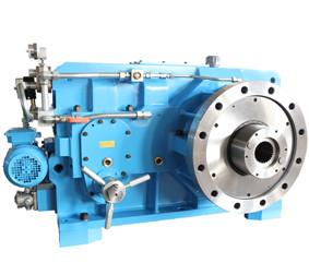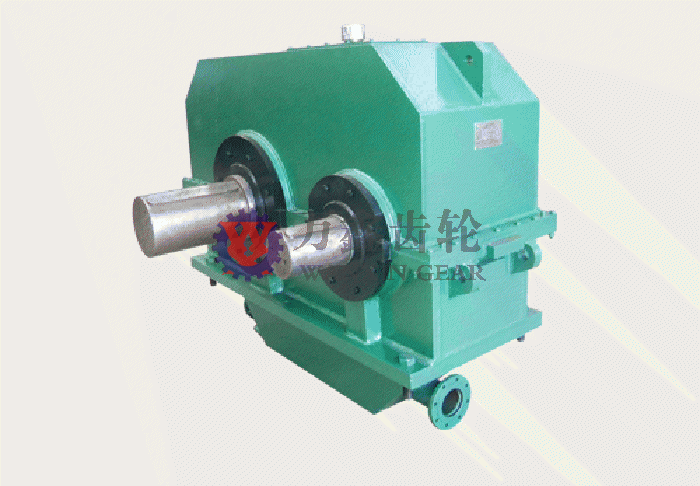 卷板機用組合減速機,包括箱體,輸出軸和輸入齒輪軸,其中:輸出軸通過軸承支撐固定在箱體上,輸出軸上設有輸出大齒輪;三個含有驅動齒輪的輸入齒輪軸均勻分布在輸出大齒輪的周邊,所述