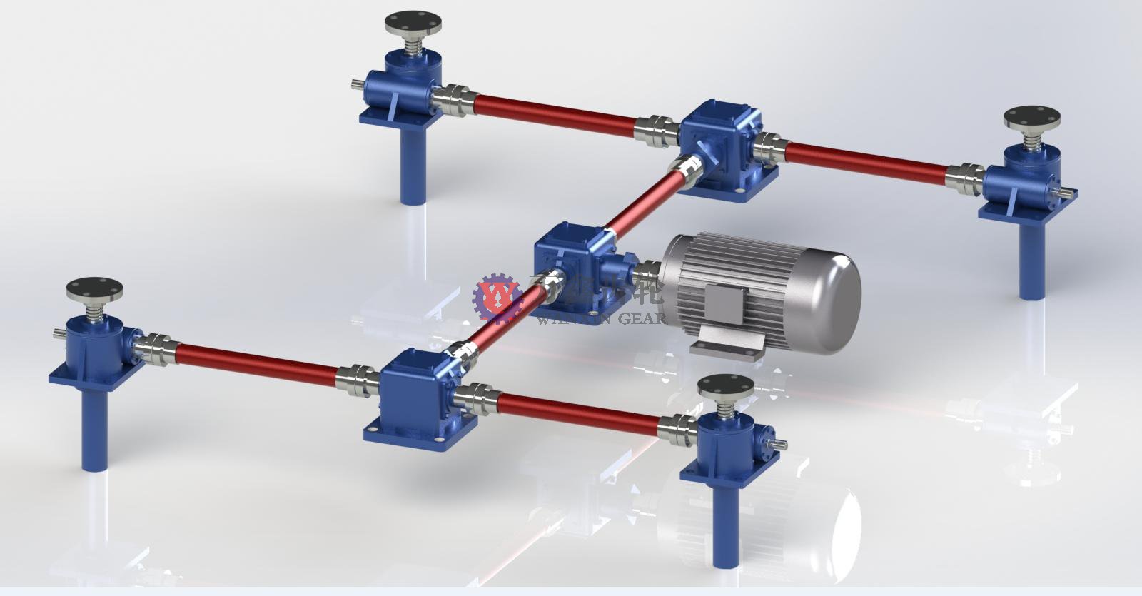 聯動絲桿升降臺,是由電動機、減速機、絲桿升降機,轉向箱,連接軸,連軸器,組合而成的機電一體化執行單元,實現多臺絲桿升降機的聯動使用,達到了多臺同步、穩定的往復升降要求,在多種場合下代替了液壓與氣動,這種以絲桿升降機為主的運動單元,為當今走進數字化時代的工程師提供了廣闊的設計空間,被廣泛用于各種行業。